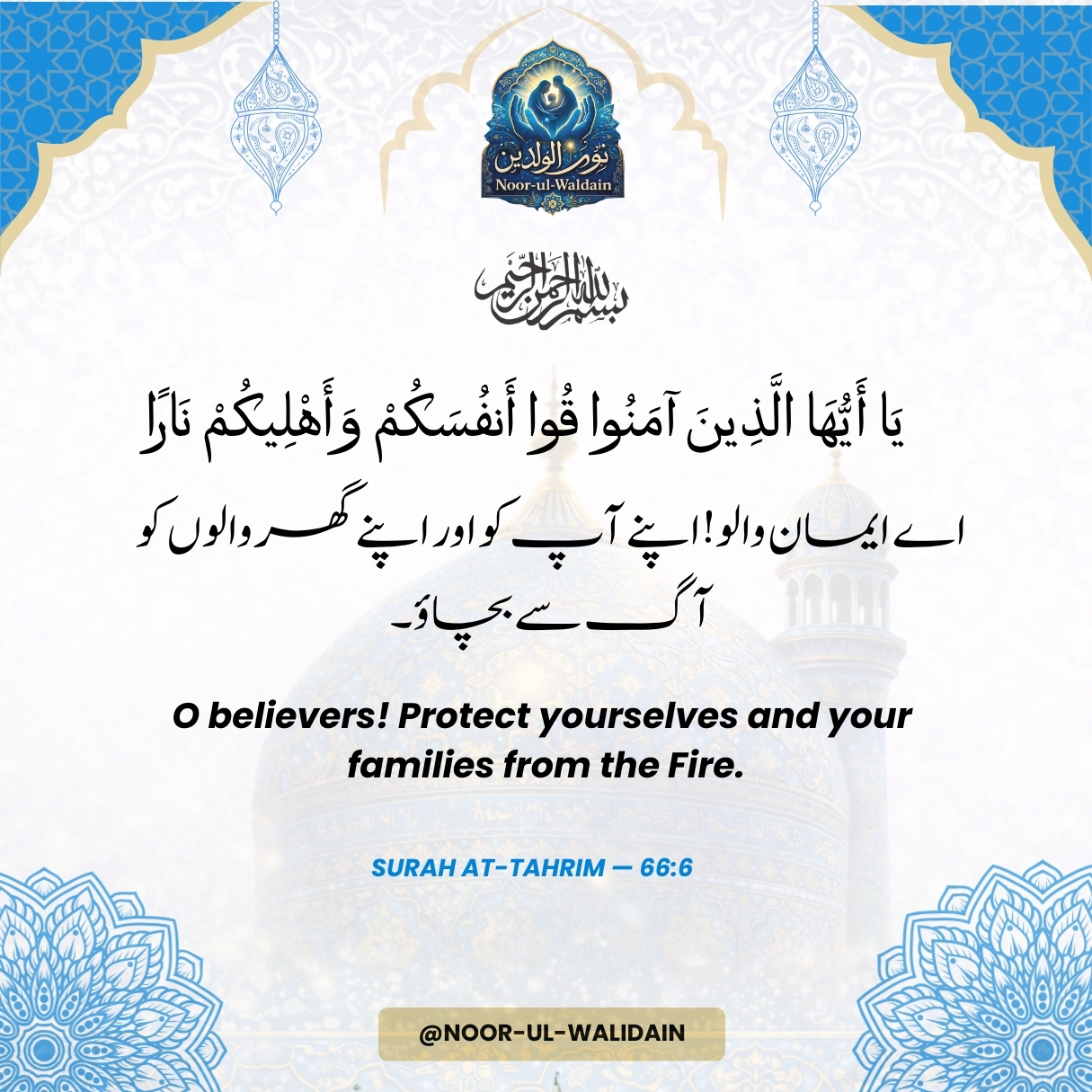 Iska matlab hai apni aur apne ghar walon ki roohani hifazat karna, Quran aur amal ke zariye.