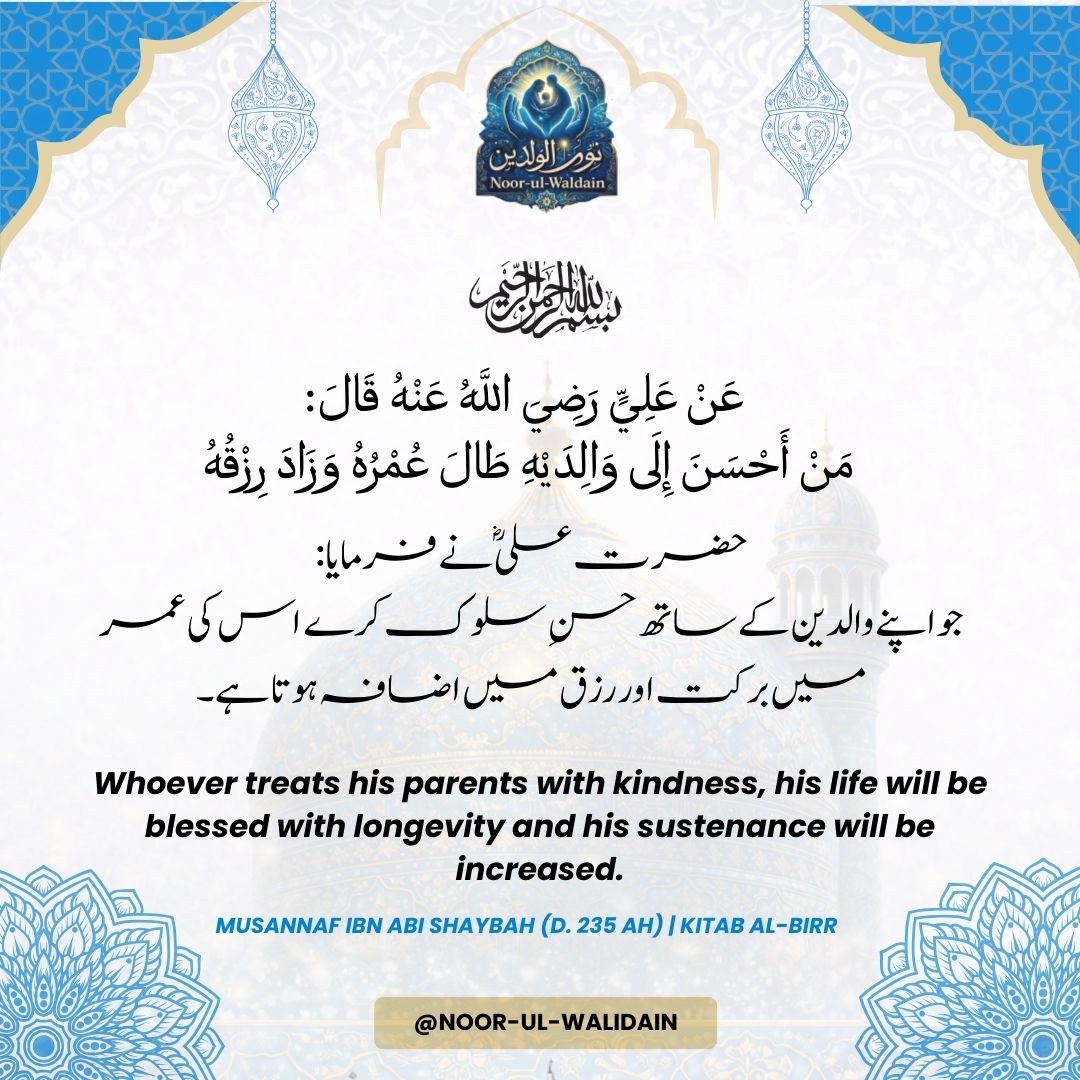 Whoever treats his parents with kindness and respect, his life is blessed with longevity and his sustenance increases. Honoring parents leads to the pleasure of Allah. Kindness is not only shown in words but also through eyes, behavior, and attitude. Serving and loving parents is a pathway to Paradise. This deed is among the greatest and reflects the beauty of faith.