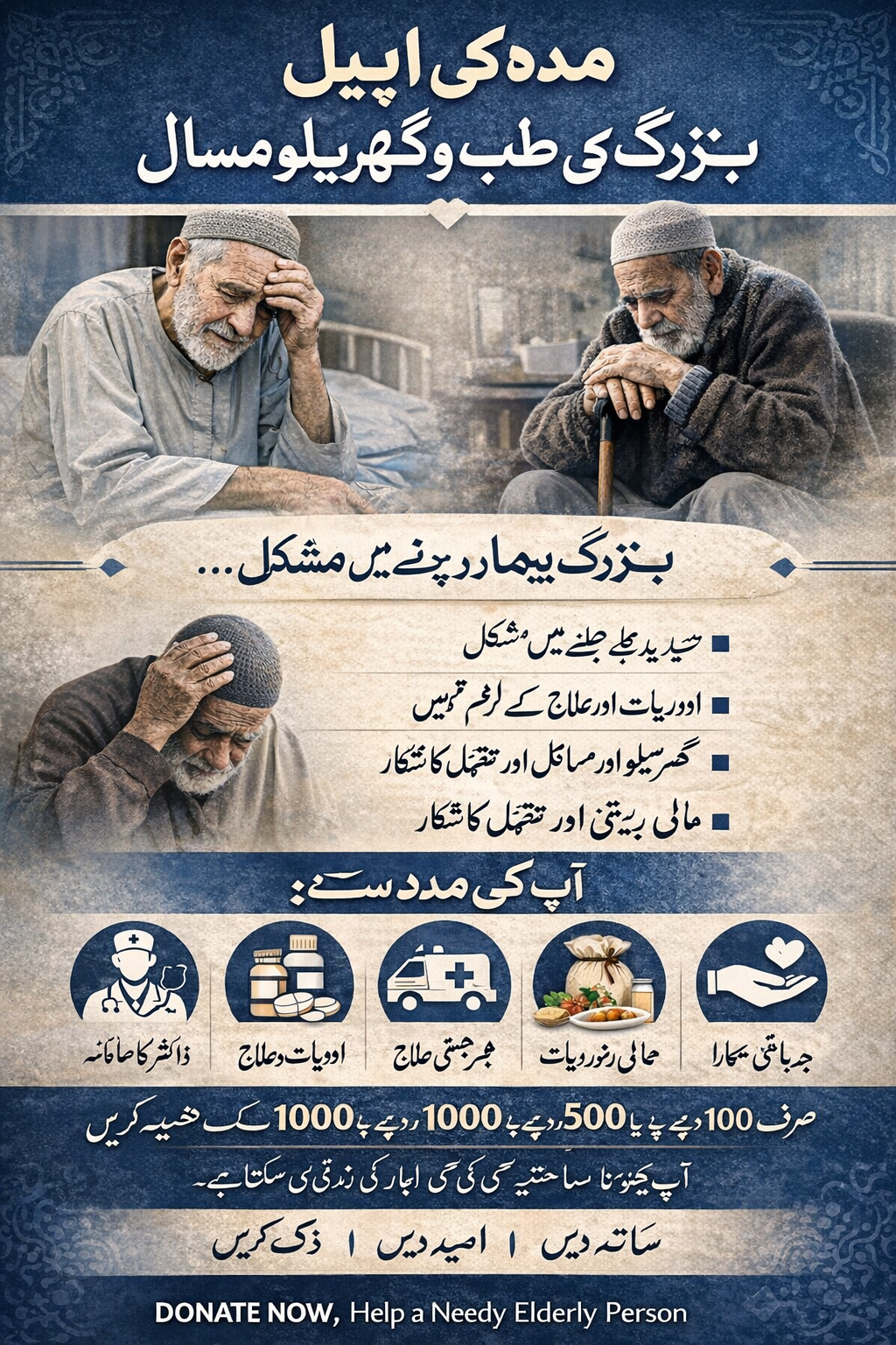 This elderly person has no one else to depend on except Allah and kind-hearted people like you.
